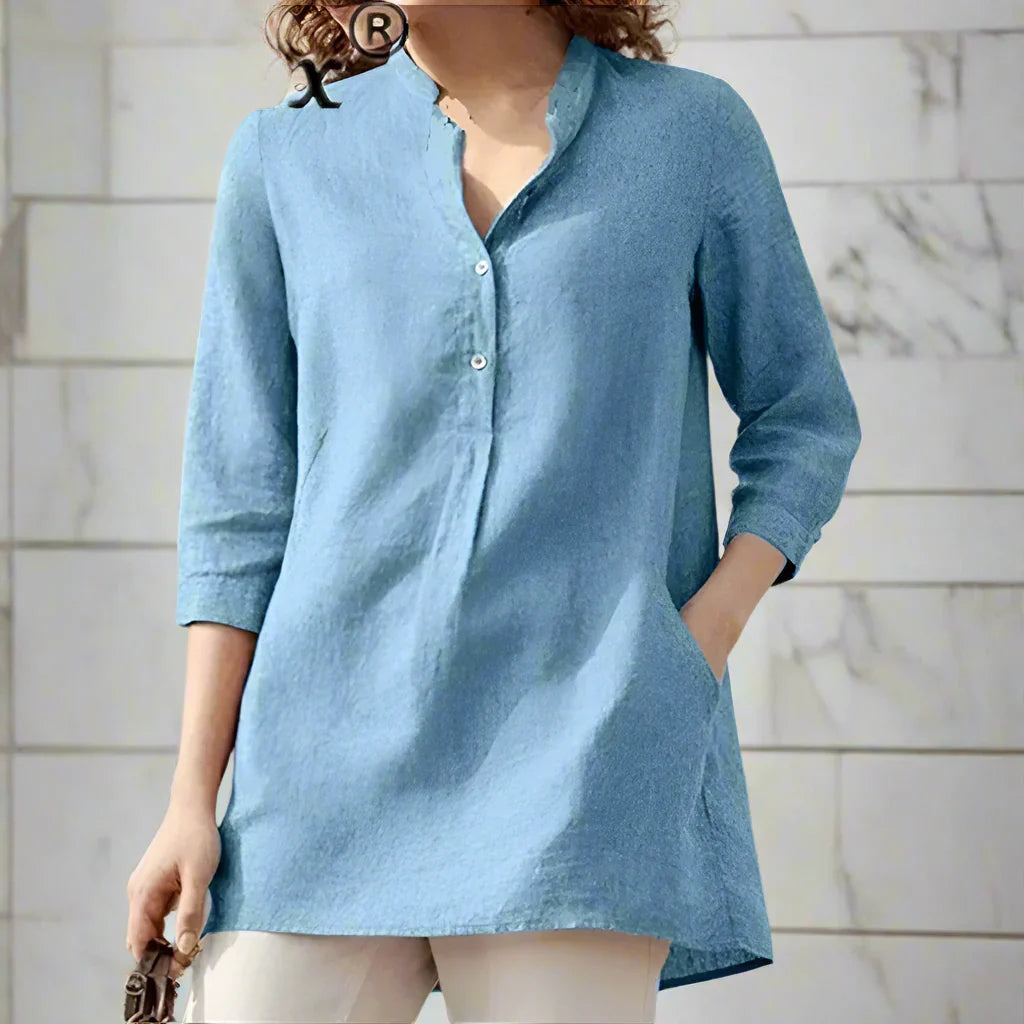 Picture this: a quiet morning, the sky stretching wide above you, and you're wrapped in the breezy elegance of the Layla V-Neck Blouse. Designed to blend relaxed charm with timeless sophistication, Layla is the blouse that makes every day feel a little more graceful—whether you're exploring the outdoors or enjoying a slow, soulful moment indoors.