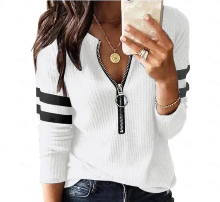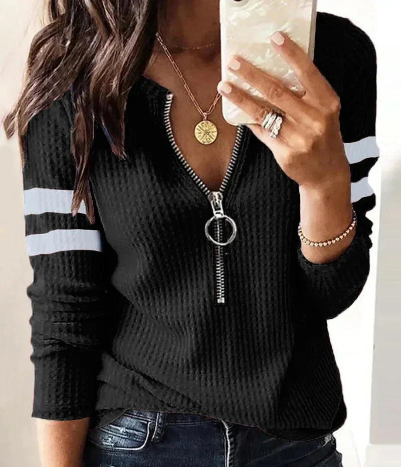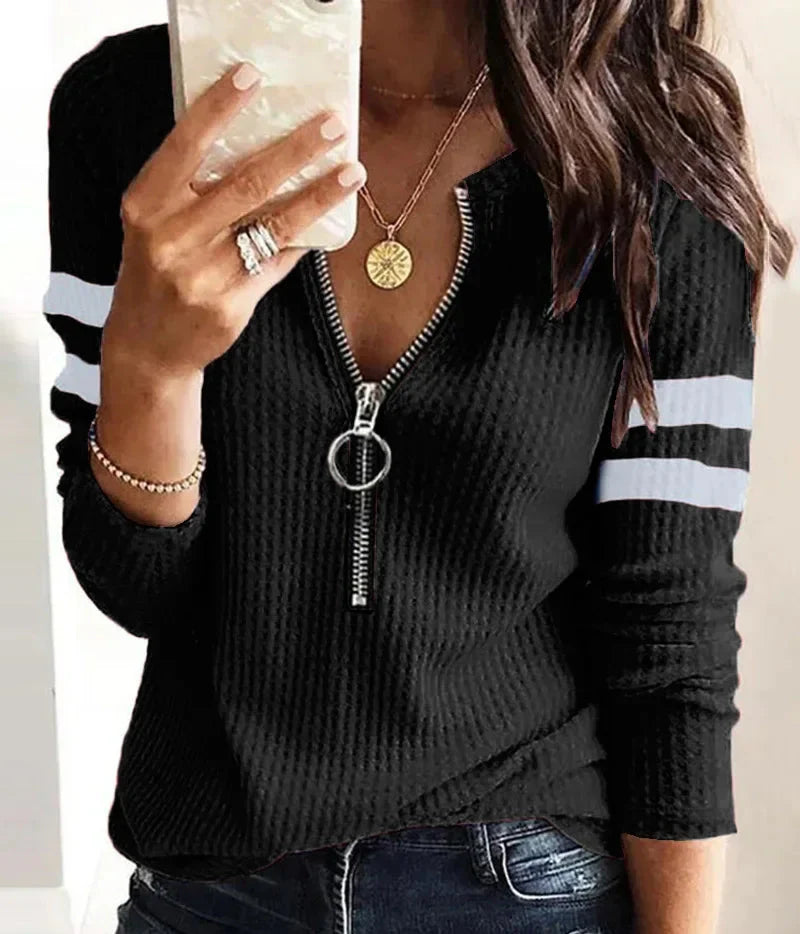 Bring warmth, comfort, and modern elegance into your collection with the Loraine V-neck Half Zip Sweater—your new go-to piece for effortless style.