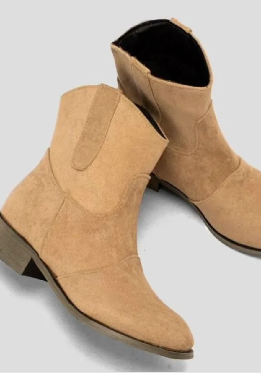 These suede western boots are a must-have for any shoe lover. Made from high-quality suede, these ankle boots offer an authentic western look with a modern twist. The slightly curved shape and distinctive stitching create a stylish look that suits both casual outfits and more elegant occasions. The boots have a low heel and a rounded toe, which not only emphasizes the style, but also ensures ultimate comfort.